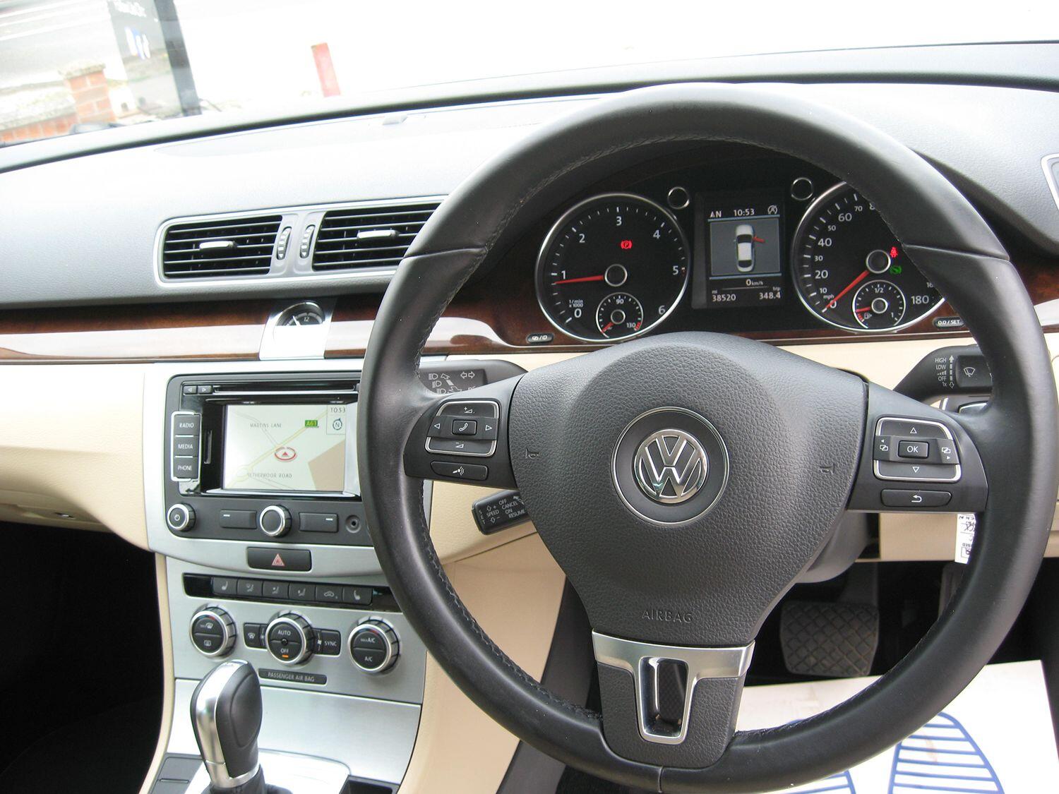 FINANCE AVAILABLE, FREE 6 MONTHS WARRANTY T+C'S APPLY. PART EXCHANGE WELCOME. This VW CC 2.0 GT Blue motion Tech TDI DSG is in excellent condition throughout, only 1 owner from new and serviced 11 times by VW to 36956 miles. NEW MOT UPON SALE. Finished in metallic brown with chrome exterior trim, front and rear park sensors, xenon lights with headlamp washers, daytime running lights, tinted rear windows, 18" alloy wheels, front fog lights, black and beige leather upholstery with armrests, heated front seats, electric drivers seat lumbar adjuster, monitor display with SAT NAV, park assist, DAB radio, blue tooth connectivity, media connectivity via media socket in the glovebox and aux socket, cd stereo, cruise control, dual zone climate control, air conditioning, front and rear electric windows, electric heated door mirrors, multi function steering wheel, trip computer display, stop/start model, DSG gearbox, auto lights, remote central locking, power steering, abs, traction control, auto hold button, tyre pressure monitor, front and side airbags, iso fix seats, runs and drives really well, real luxury car with excellent performance and economy, must be seen. PART EXCHANGE,WARRANTY AND FINANCE AVAILABLE.
